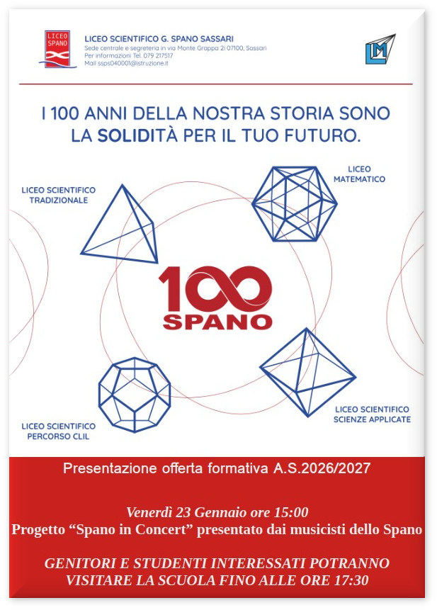 Venerdì 23 gennaio 2026, alle ore 15:00, presso l’Aula Magna del nostro Istituto sarà presentata l’Offerta Formativa del nostro Liceo